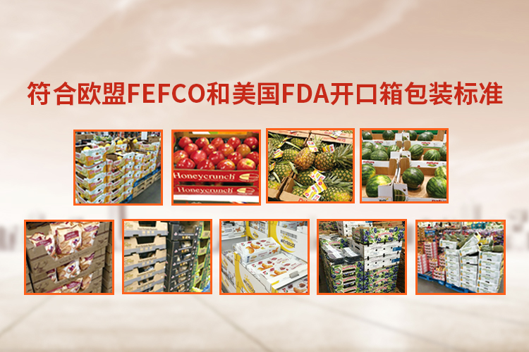 符合歐盟FEFCO和美國(guó)(guó)FDA包裝標(biāo)(biāo)準(zhǔn)(zhǔn),典型Plaform,Citrus, P84,立柱箱的成型
